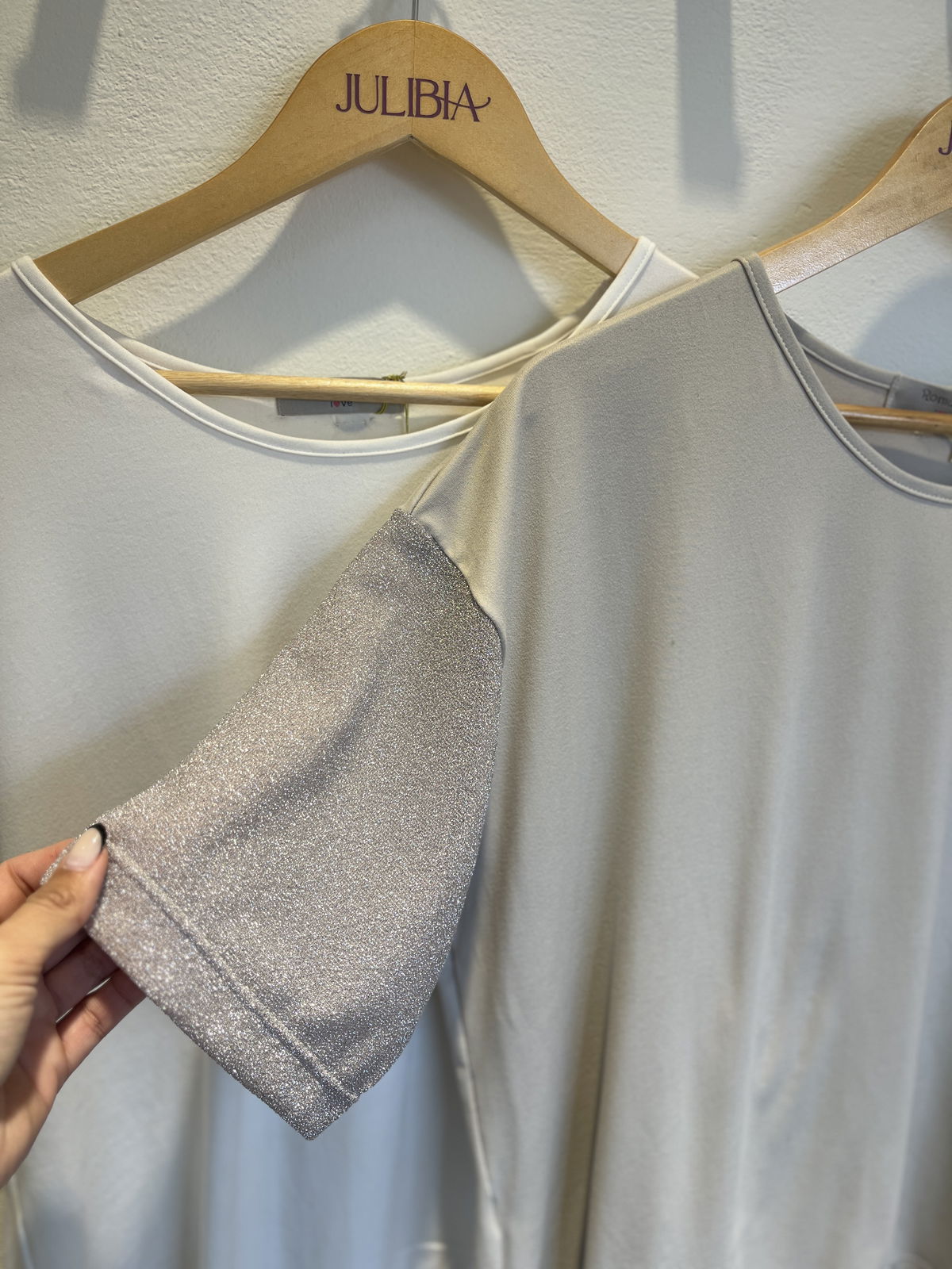 Remera manga caida con detalles en lurex sobre las mangas