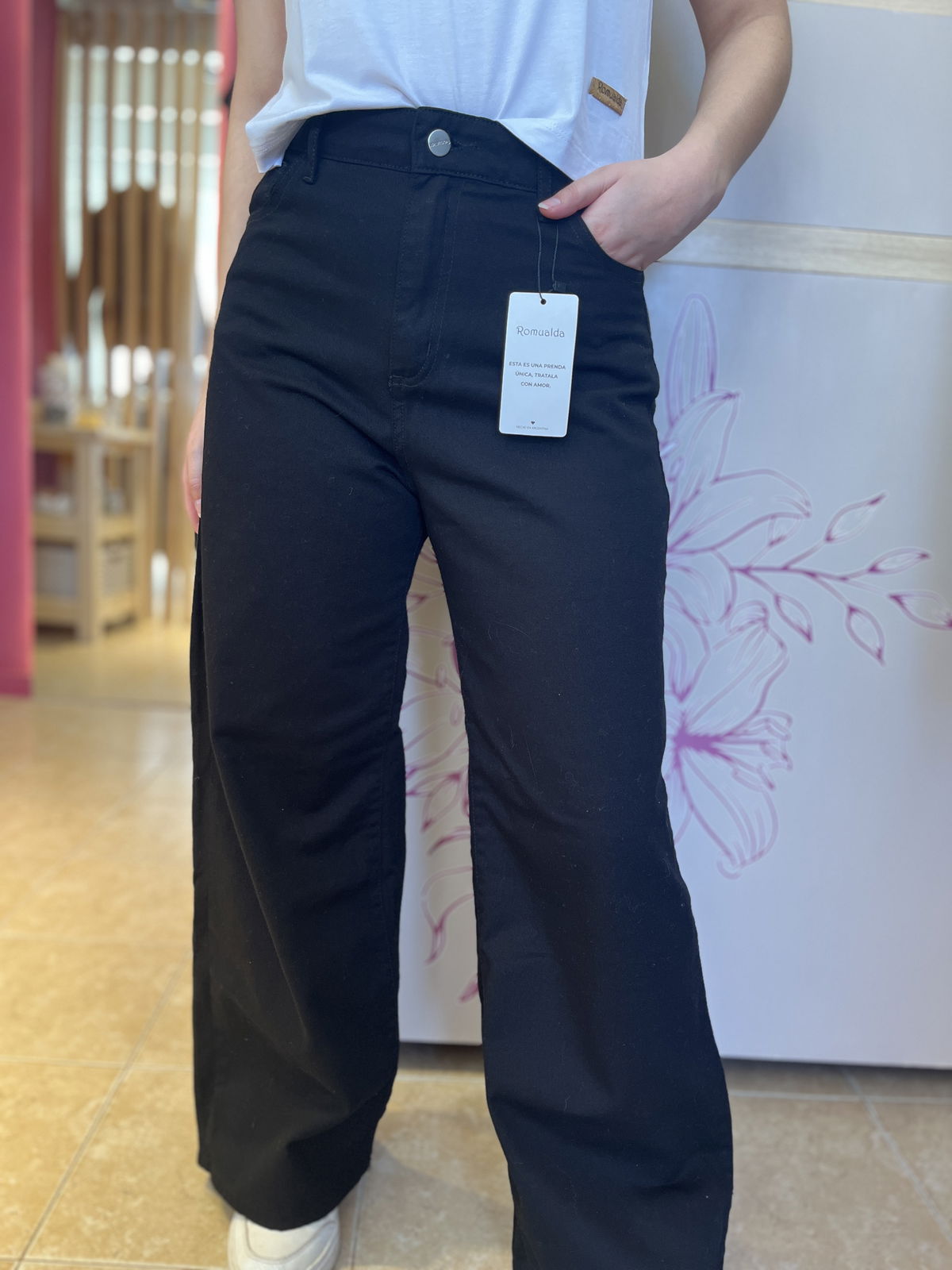 Jeans super wide leg, rigido.