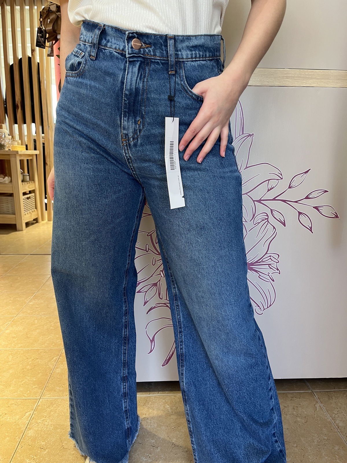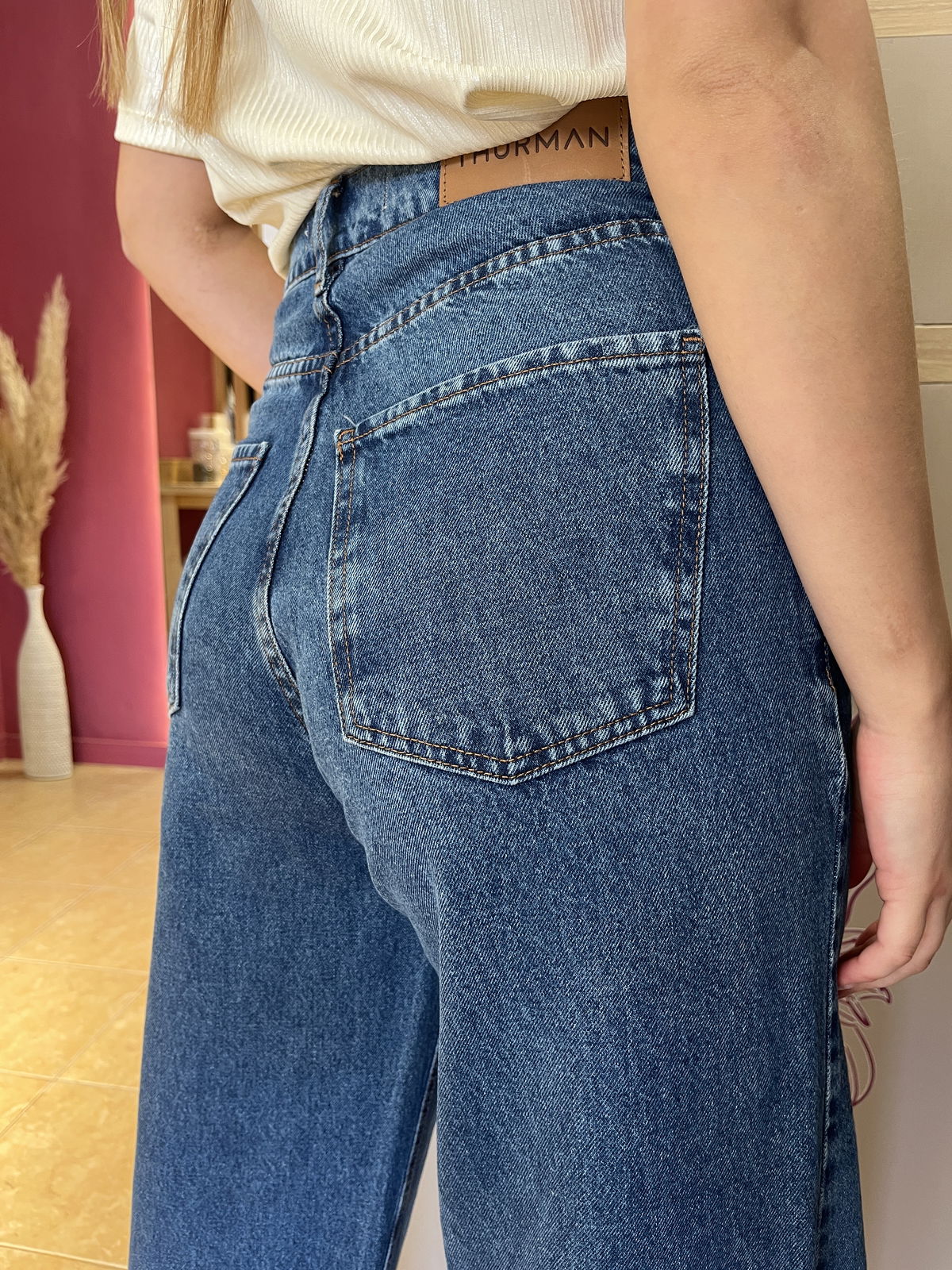 Jeans thurman wide leg, rigido. Desflecado.