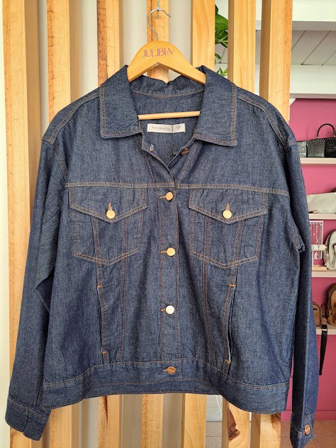 BLUE es una chaqueta de calce relajado, con largo a la cadera.